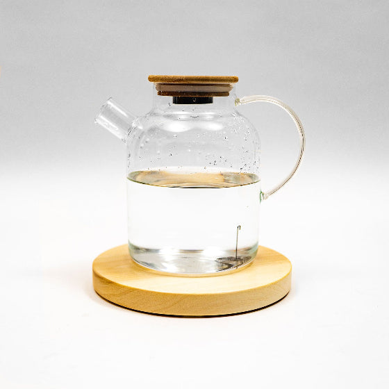 - Fill the jug with water, cover it with the magnetic lid, place it on the base, and gently stir 2–3 times clockwise using a wooden spoon.